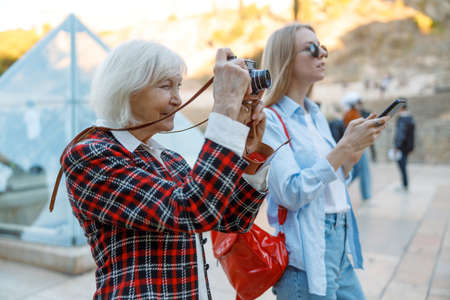 A group people outdoor camera smartphone happy city travel tourist street urban multicultural