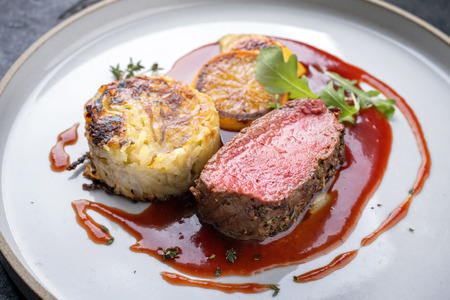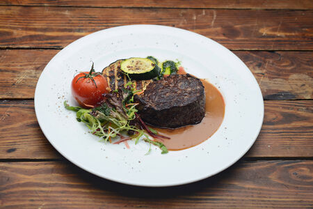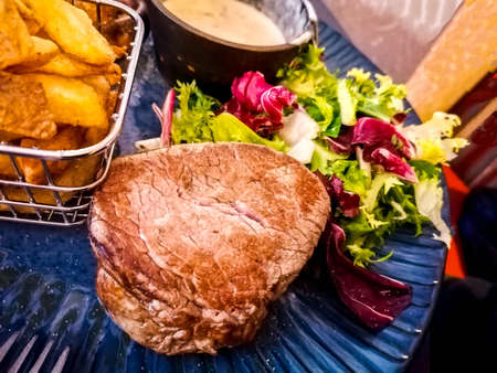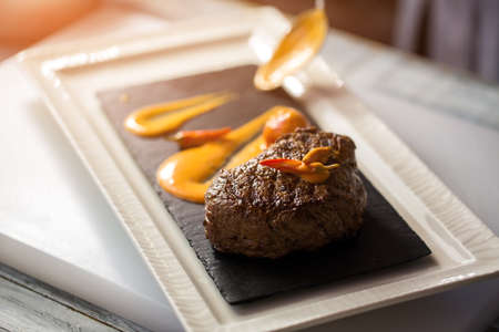 steak beef main dish are Delicately cooked with various ingredient and ready to serve in luxury course.