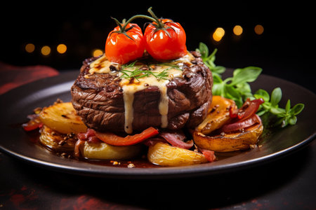 juicy steak veal - beef meat with tomato and potatoes