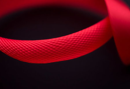 close up of a red ribbon on a black background