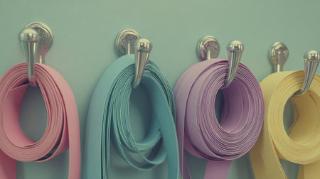 photo of an array of colorful resistance bands, created with generative ai