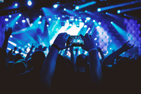 Supporters recording at concert - Candid image of crowd at rock concert