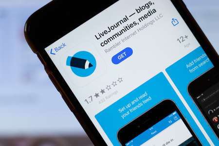New York, USA - 15 May 2020: LiveJournal mobile app logo on phone screen, close-up icon, Illustrative Editorial.