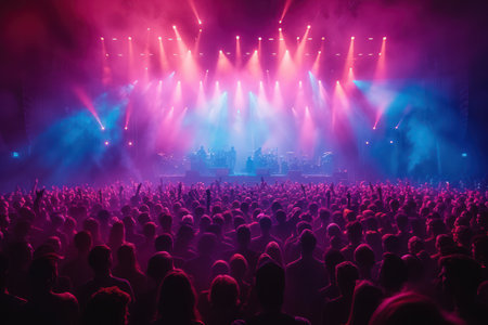 An energetic concert, during which the crowd spreads its hands. Generative AI