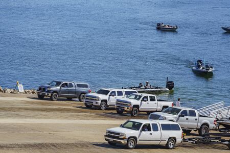 California, MAR 12: Sunny view of a dock of Lake Elsinore on MAR 12, 2017 at California