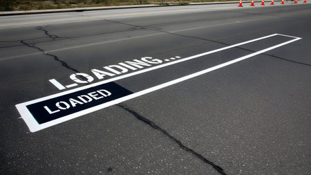 showing road marking with loading and loaded text indicating progress on asphalt.