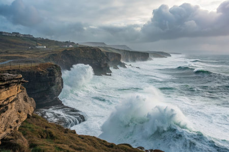birds waves and cliffs on the wild atlantic way in Ballybunion county Kerry Ireland