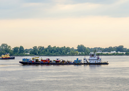 BATON ROUGE, USA - JULY 13, 2013: freight ship on Mississippi river at sunset in Baton Rouge, USA. The Mississippi ranks as the fourth longest and tenth largest river in the world.