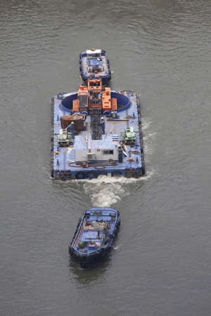 Thames River Embankment, London | UK - 2021.06.26: Tugboat team at the Thames River