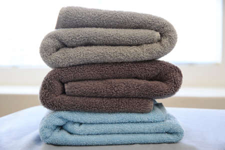 Rolled up fresh bath towels. Beauty, spa concepts.