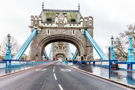 Tower Bridge in London, Gray rainy day. Great Britain, UK