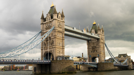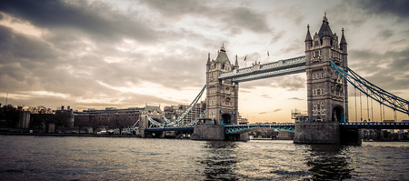 Tower Bridge in London city, United Kingdom with thick clouds on the background. Panorama