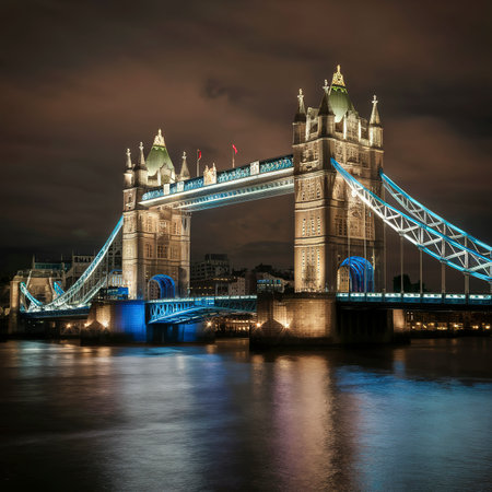 Tower bridge at night, historical monument of London, England