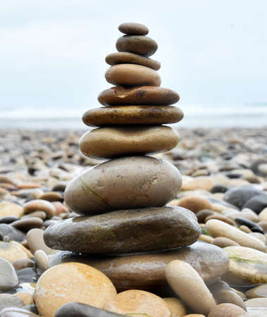 Stack of stones on the beach, zen stones, balance, meditation, relaxation