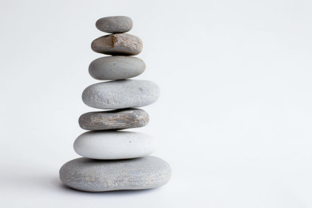 Zen Stone Stack on Textured Background. A balanced stack of smooth stones set against a textured gray background, evoking a sense of calm and mindfulness.