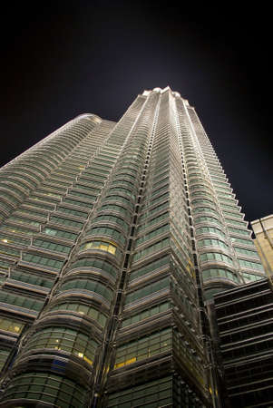 Building skin of Twin Towers at night in Kuala Lumpur, Malaysia