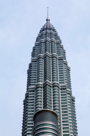 Kuala Lumpur, Malaysia - January 18 2020: Architectural details of the Petronas Twin Towers, among the tallest buildings in the world on January 18th, 2020 in Kuala Lumpur, Malaysia