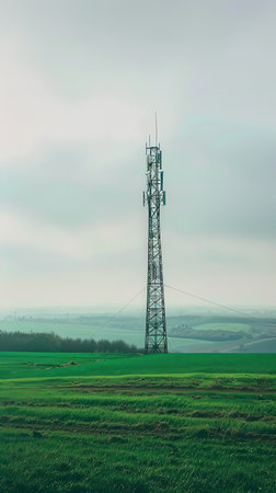 the AI Image Generator, Tall Communication Tower in a Rural Landscape During Daytime