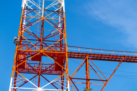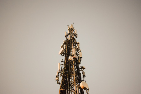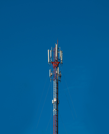 Telecommunication antenna tower, Radio antenna tower, Cellular antenna tower in blue sky background