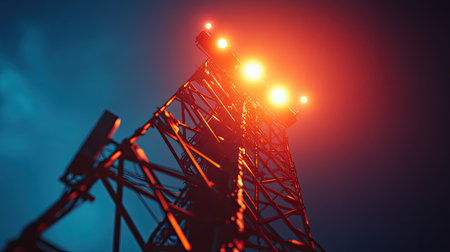 A close-up of a glowing communication tower, symbolizing modern communication technology.