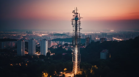 A Telecommunication Tower Mobile Network Infrastructure, Wireless Communication Hub, Photo Illustration Image Picture Photography