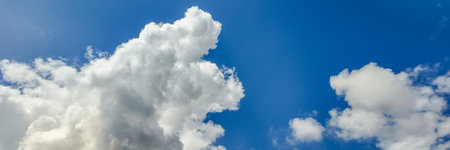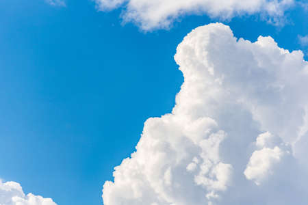 Bright landscape of white puffy cumulus clouds on blue clear sky