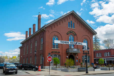 Andover Town Hall on 20 Main Street in historic town center of Andover, Massachusetts, MA, USA.