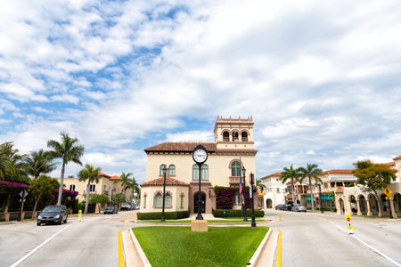 Palm Beach, Florida USA - March 21, 2021: mansion building on crossroad. palm beach town hall