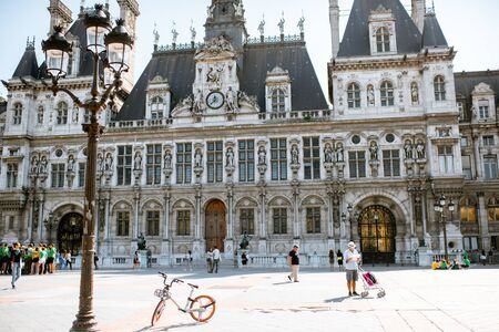 PARIS, FRANCE - September 01, 2018: City Hall building housing the City of Pariss administration with people on the square