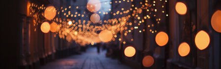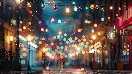 Festive Street Illumination. Sparkling Garlands, Lanterns, and Bokeh Lights for a Magical Atmosphere