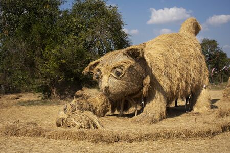 Straw puppets or straws man figure Festival for thai people and foreign traveler travel visit at Mahasarakham city