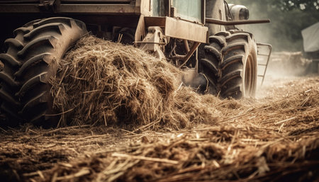Farmer working outdoors with agricultural machinery harvesting wheat in summer generated by artificial intelligence