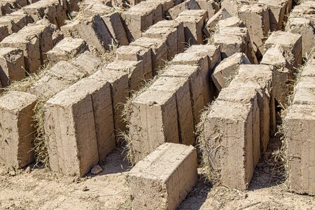 Adobe brick from adobe for construction. The concept of the construction of housing from clay.