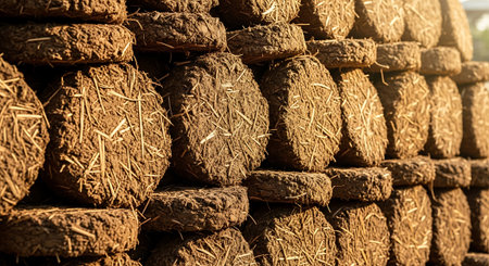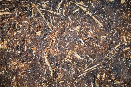 A pile of manure and bales with straw in late autumn near a dairy farm. Site about farms, agriculture, country , seasons. Podlasie, Poland.