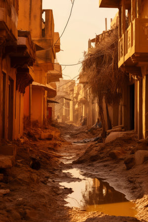 Deserted Indian Village: An empty rural village in India, with traditional mud huts, narrow lanes, and a quiet