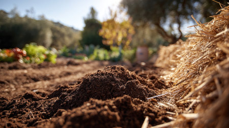 Prepare your garden with rich soil that fosters sustainable growth. This vibrant outdoor scene captures the essence of gardening and agriculture with fresh plants.