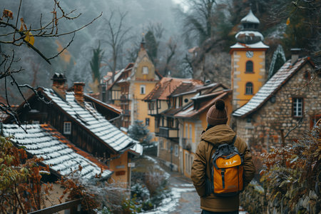 snow-covered german small town or city with old houses in winter