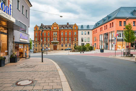 HOF, GERMANY - CIRCA MAY, 2020: The Altstadt street in old town of Hof, Bavaria, Germany