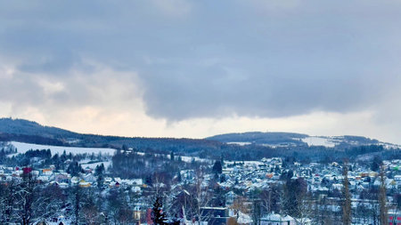 Panorama of the mountain town Schneeberg in winter