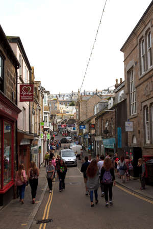 St. Ives (England), UK - August 13, 2015: St. Ives main road, Cornwall, United Kingdom.