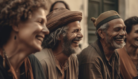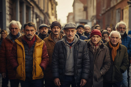AI Generative Group of Old Men with Autumn casual urban Clothes Outside, Portrait of guys lifestyle