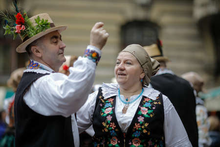 Croatian people with traditional clothes in Zagreb