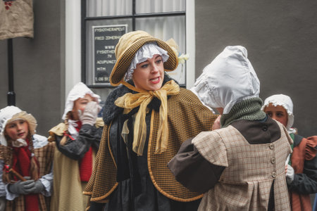 Deventer, Netherlands, December 15, 2018: The teacher scolds one of the children during the Dickens festival in Deventer in the Netherlands