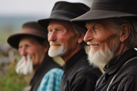 Portrayal of Amish people, traditional lifestyle, close bonds of community, rural simplicity, values of cultural richness, traditions of close-knit family friendly living group. village country life