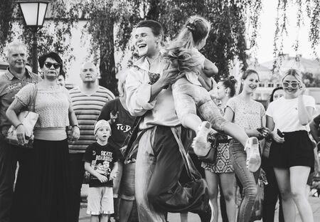 August 4, 2018 Minsk Belarus Street festivities in the evening city