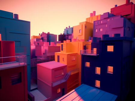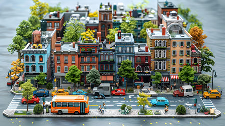 Vibrant Miniature Cityscape with Isometric Design