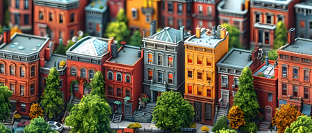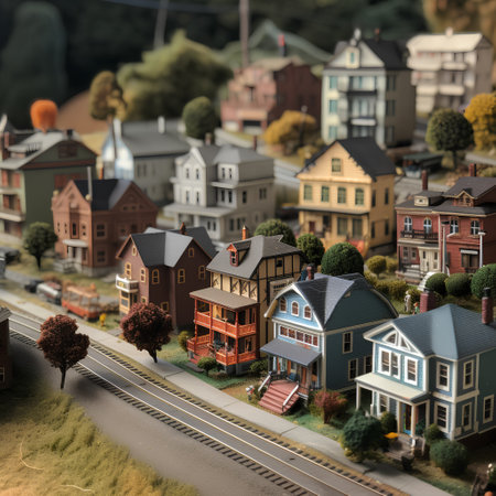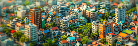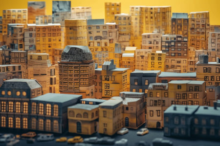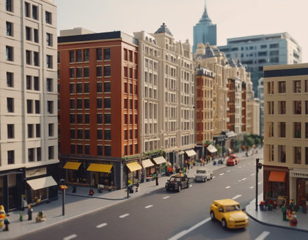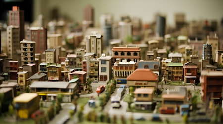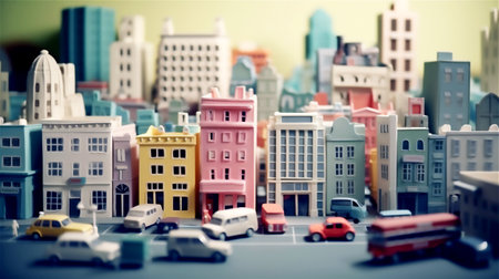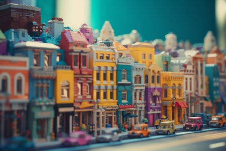 Vibrant and colorful miniature toy cityscape with detailed tiny buildings and playful architecture, perfect for educational and creative hobby collection and display for kids