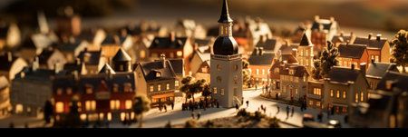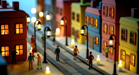 A beautifully detailed and illuminated miniature cityscape with a warm glow