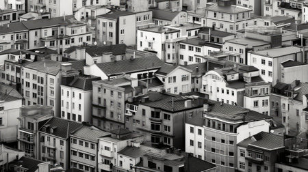 aerial view of solar panel rooftops on urban buildings, created with generative ai