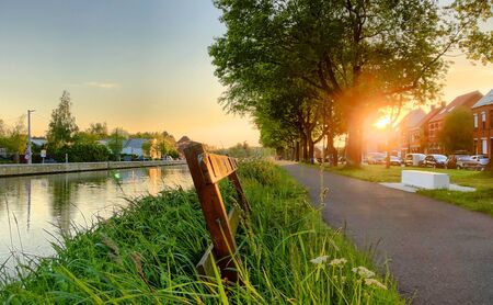 Sunset over a small river in springtime, Almere, Flevoland, The Netherlands